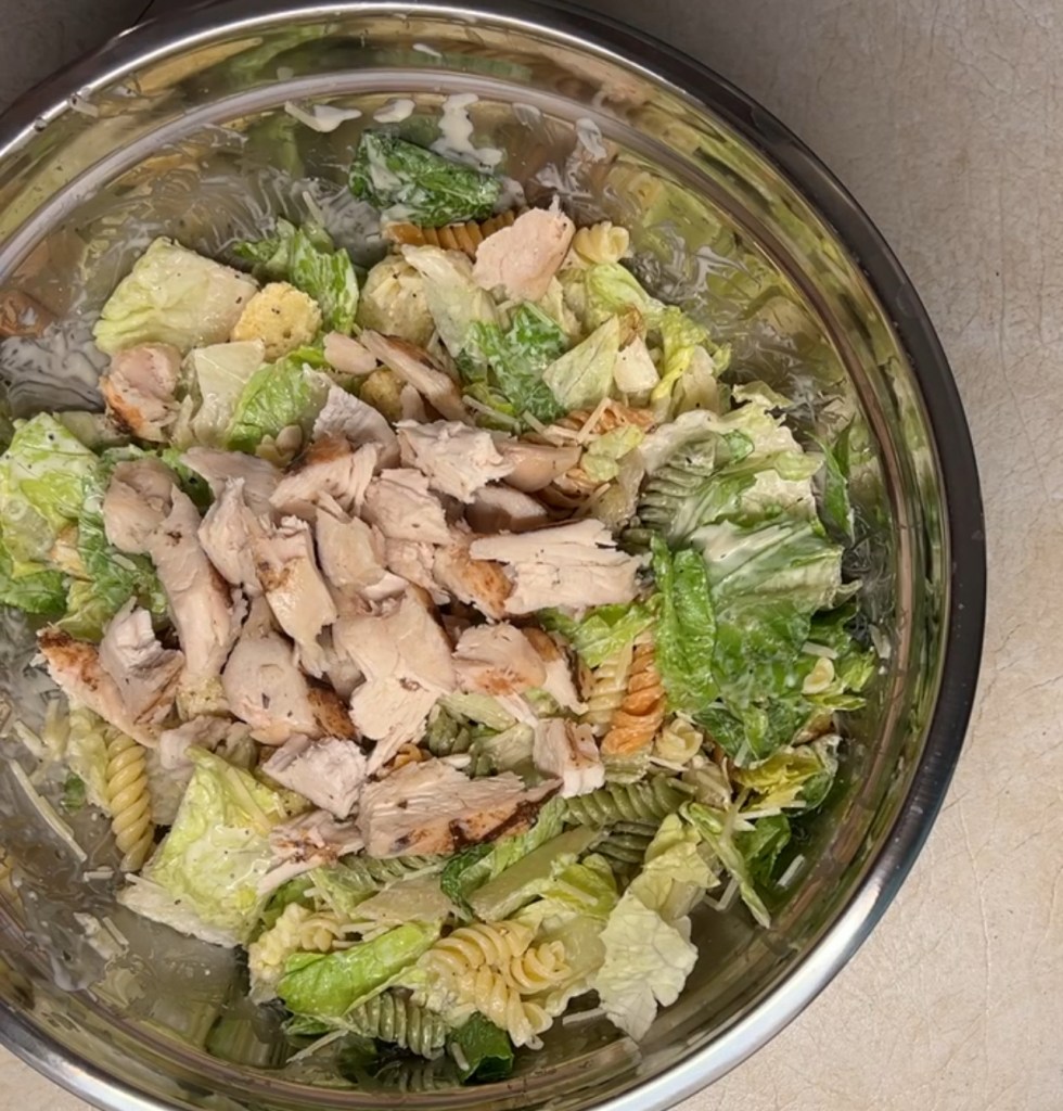 4. Chop up chicken into bite size pieces and add to salad bowl.