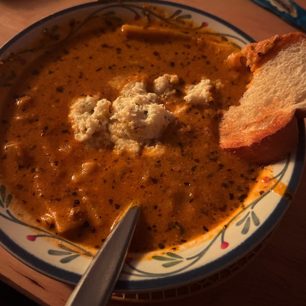 - Soup is ready to serve. Add a dollop of the remaining cheese mixture into your individual bowls to add extra creamy goodness!